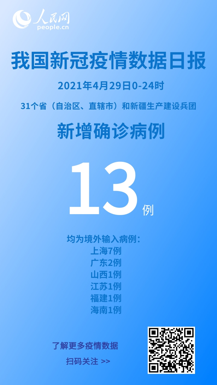 人民网北京4月30日电(记者崔元苑)今日,国家卫生健康委于官网发布了截至4月29日24时新型冠状病毒肺炎疫情最新情况。4月29日0―24时,31个省(自治区、直辖市)和新疆生产建设兵团报告新增确诊病例