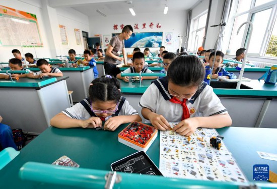 9月8日,银川市兴庆区第三小学学生在课后参加科学实验兴趣小组。 秋季开学以来,宁夏银川市全面推进义务教育学校课后服务。各学校因地制宜,制定课后服务实施方案,开展丰富多彩的文艺、体育、科学兴趣小组