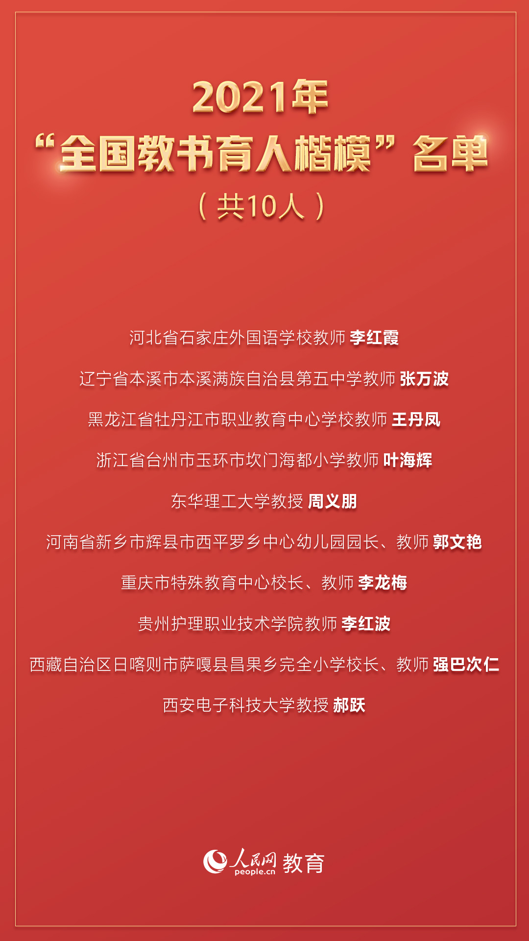 人民网北京9月8日电(记者孙竞、温璐、李依环)记者从今天上午举行的教育部新闻发布会上获悉,经中央领导同志批准,中宣部、教育部联合开展全国教书育人楷模学习宣传活动,今年共计推出10位“全国教书育人楷模”