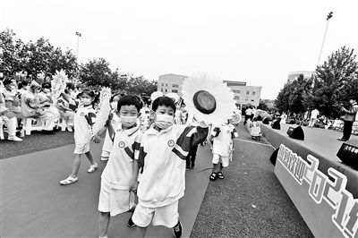 昨日,人大附中北京经济技术开发区学校举办开学典礼,迎接679名小学一年级新生摄影/本报记者付丁 今天,全市140万中小学生正式开启新的学期。在开学前夕,北京市第三场教育“双减”工作新闻发布会于昨