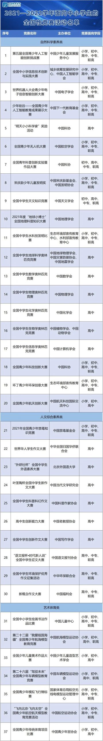 人民网北京8月18日电(记者孙竞、李依环)教育部今天发布消息称,拟确定全国青少年人工智能创新挑战赛等37项竞赛为2021-2022学年面向中小学生开展的全国性竞赛活动,举办时间原则上为2022年8月前