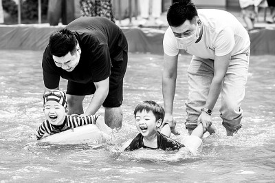 2021年6月17日,浙江省湖州市长兴县雉城街道张家村幼儿园内,小朋友们正在和爸爸一起进行“小乌龟学游泳”亲子游戏。吴拯摄/光明图片2021年7月7日,在贵州省黔西市铁石苗族彝族乡铁盔山村大坪子,小朋