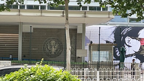 今年6月,美国驻华大使馆外。受访者供图如果没有那场意外,8月初的某天,饶阳应该在飞往美国的飞机上。今年2月,他如愿拿到了一所美国知名高校的博士录取通知书,学校、专业、导师都几近无可挑剔。计划中,飞机要