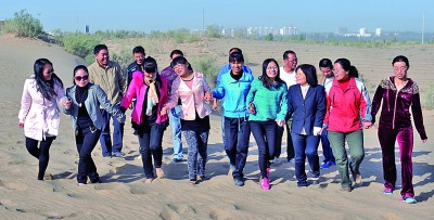 2014年5月10日,保定学院支教教师们在新疆且末县沙漠上。河北日报记者贾恒摄/光明图片2014年6月5日,“高原教坛三剑客”徐建旺、岳刚、闫俊良(从左至右)在西藏南木林县第一中学校园中。吴倩楠摄/光