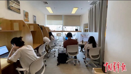 7月17日下午,位于北京朝阳区望京的一家付费自习室里,不少年轻人在学习。中青报・中青网记者孟佩佩/摄韩剧《请回答1988》里德善和伙伴们常常去的同款自习室,开始在国内大小城市风靡。家在沈阳的95后女生
