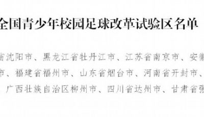 中新网4月26日电据教育部网站消息,教育部公示11个全国青少年校园足球改革试验区名单,包括辽宁省沈阳市、黑龙江省牡丹江市、江苏省南京市、安徽省合肥市、福建省福州市、山东省烟台市、河南省开封市、湖北