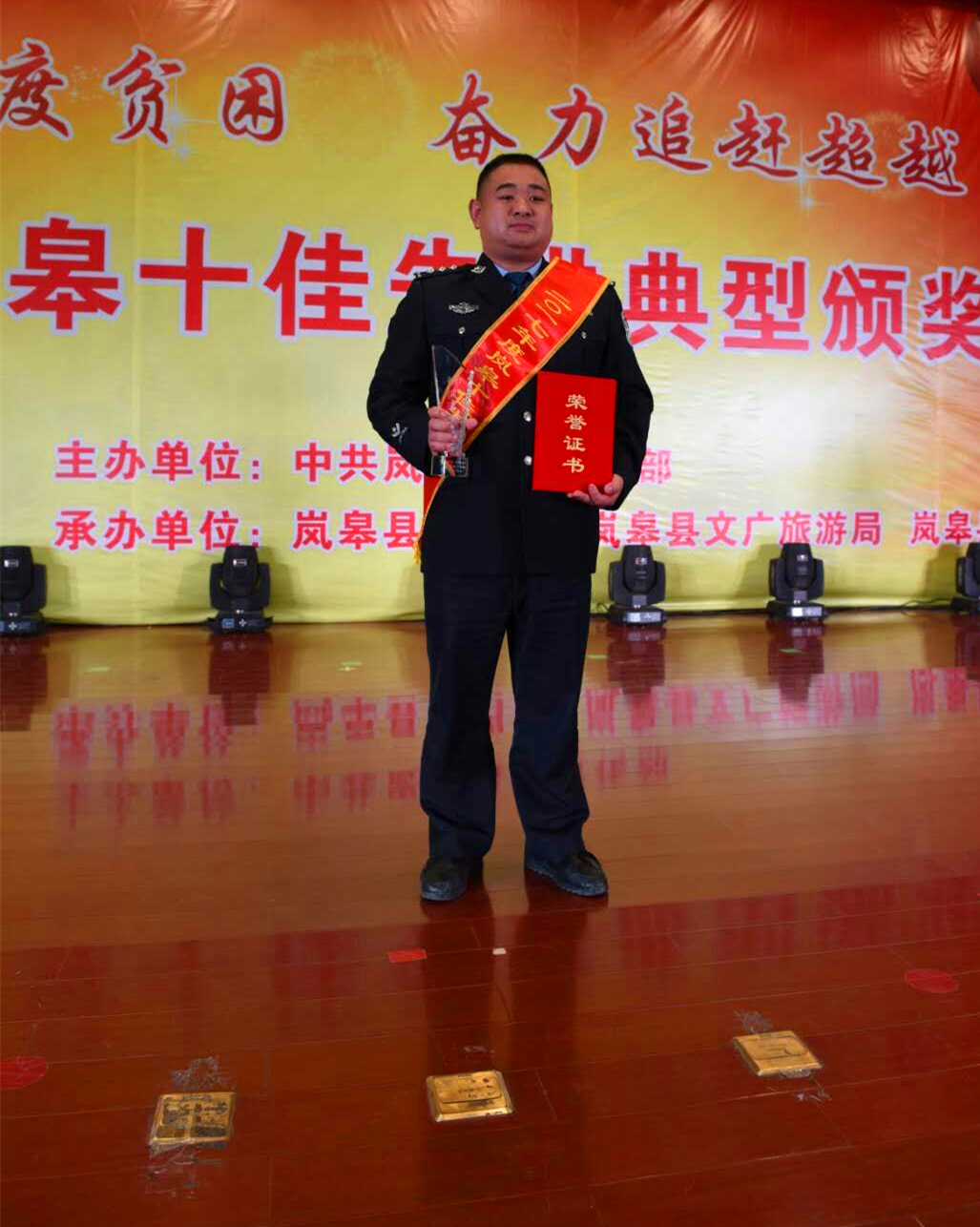 陕西省岚皋民警周杰获2017年度“全县十佳先进典型”荣誉称号