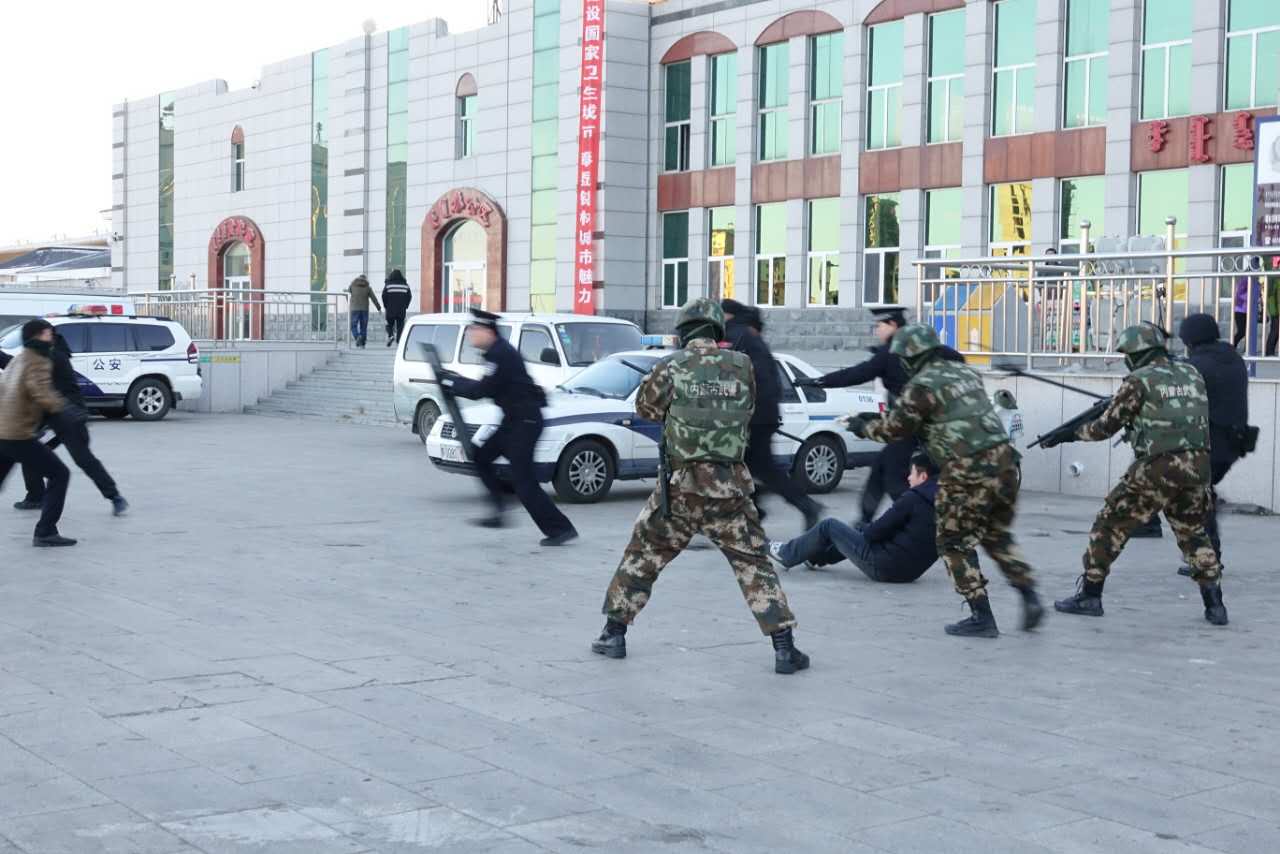 演练预设情景为2名男子在锡林浩特车站站前广场突然持刀疯狂的砍杀旅客,值班民警通过视频监控发现后,立即通过对讲机呼叫值勤民警及值班辅警携带反恐装备赶往现场,同时上报所领导。派出所立即启动反恐应急预案并且通报路地联勤办公室,锡林浩特市特警大队、武警锡盟支队与锡林所民警组成抓捕组共同前往现场进行处置,快速制服持刀行凶犯罪嫌疑人。期间,警组各司其职,相互配合,圆满的完成了反恐实战演练任务。演练结束后,路地双方就演练中存在的问题进行了总结交流。通过此次的反恐实战演练,进一步强化了民警的应急处突意识,提高民警面对突发事件的反应和应急处置能力。
