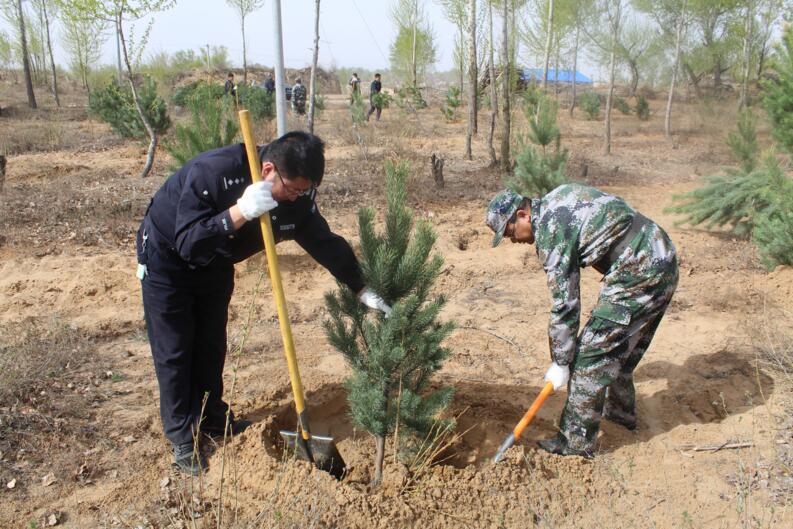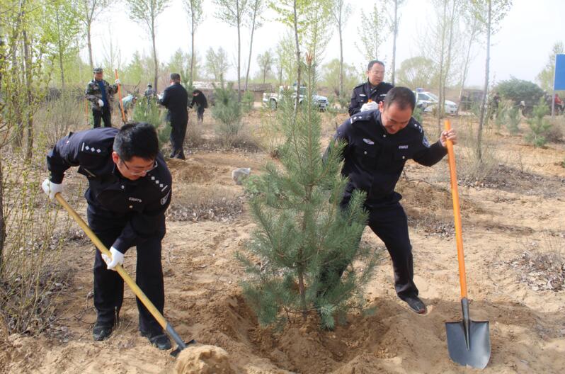 4月10日,靖边县公安局交警大队杨桥畔中队全体民警在杨桥畔镇党委、政府的统一组织安排下,参加了一年一度的植树造林活动。上午9时,全体民警与杨桥畔镇主要领导、干部职工数十人来到杨桥畔镇杨二村,有序的进行了义务植树活动,活动中,大家分工明确,有的负责搬树,有的扶树填土,有的培土浇水,民警干劲十足,将一颗颗充满生机的希望的树苗植入坑内,经过两个多小时的劳动,800余颗松树的沙土地里“安家落户”,为那里添上一片新绿。植树造林不仅可以绿化家园,还能起到扩大山林资源、防止水土流失、保护农田、调节气候、促进经济发展等作用,是一项利于当代、造福子孙的宏伟工程。