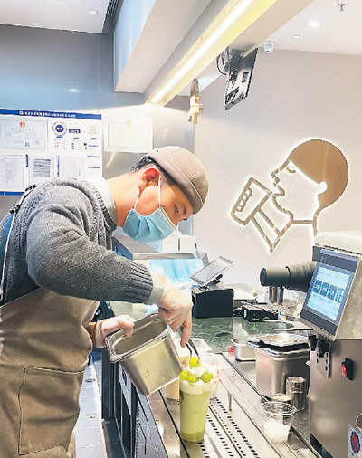 调饮师夏云龙在制作茶饮。 资料图片 食品安全管理师齐晋弘在餐厅后厨检查食品卫生。 资料图片 服务机器人应用技术员张晓明在调试送餐机器人。 资料图片 2019年11月,北京江河幕墙系统工