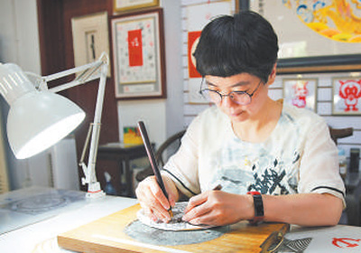 【绝活看点】 武汉“刘泥巴剪纸”将剪纸技艺发展为“剪、刻、撕、烧、立体、刺绣”六大技法。剪刻之下,花纹繁复细腻;手撕赋形,毛发形象如生;线香烧制,字如墨汁晕染;立体构图,折之跃然纸上;刺绣镶边,