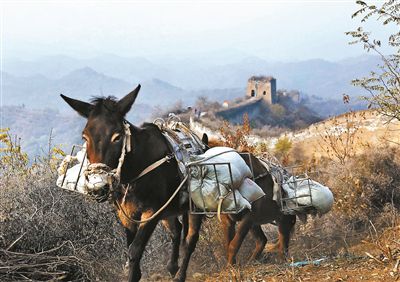 驮队向山上运送施工材料蟠龙山“二十四眼敌台”完成抢险加固运送物料,施工人员全程需要攀爬四十分钟历经数百年的自然风化和人为影响,明代长城不免出现裂隙、坍塌等问题隐患,直接影响到文物寿命。日前,位于北京市