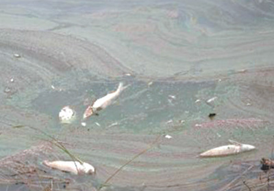 在四川资阳市雁江区东峰镇高板桥水库,水质污染问题很严重。水面浮着一层绿沫,还漂着一些死鱼,臭味刺鼻(见图)。希望相关部门切实重视水库污染问题,采取有力措施进行整治。 四川资阳市 &nb