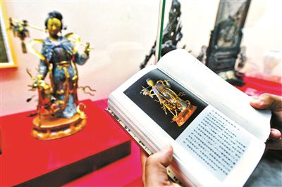 清代文物“铜胎珐琅麻姑携鹿”实物与日历图片对比 本报讯(记者王斌)昨日,《颐和园日历・2022》在颐和园博物馆与游客见面。北京青年报记者了解到,2022年《颐和园日历》以颐和园福寿文化为主题,延