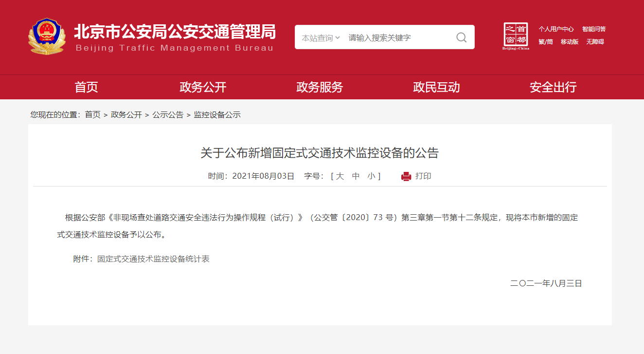人民网北京8月6日电(郝萍)近日,北京市公安局公安交通管理局(以下简称“北京市交管局”)公布了一批新增设的固定式交通技术监控设备点位,其中217处路口的“电子警察”升级,可记录机动车“遇行人通过人行横