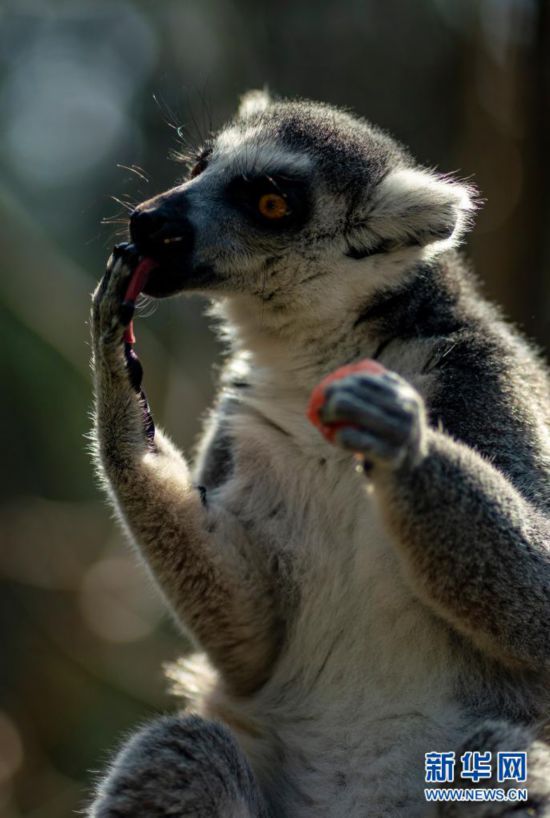 8月2日,云南野生动物园的狐猴在享用“西瓜冰棒”。 当日,为了让动物园里的动物们享受清凉夏日,云南野生动物园工作人员专门做了一些“冰棒”给需要的动物们享用。 新华社记者江文耀摄