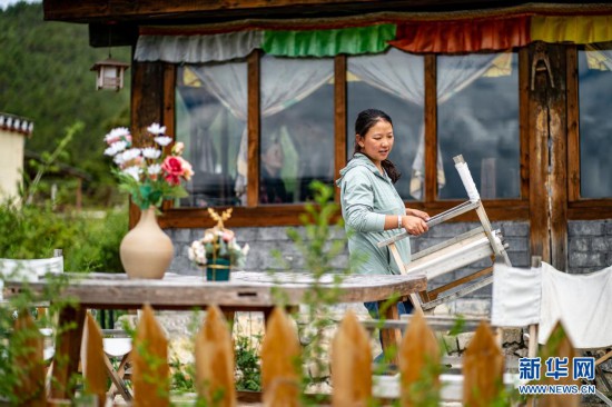 在位于云南省迪庆藏族自治州香格里拉市建塘镇红坡村的仁安山谷帐篷庄园,知诗拉姆在工作(7月18日摄)。 新华社记者江文耀摄 在位于云南省迪庆藏族自治州香格里拉市建塘镇红坡村的仁安山谷