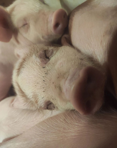 分娩舍里的小猪。受访者供图 猪场生活区的篮球场。受访者供图 李迪在猪舍隔离时洗澡的地方。受访者供图 李迪准备给猪打针。受访者供图 配怀舍。受访者供图 “一个月给你7000元,每天的工作是
