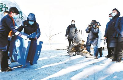 昨日,延庆区野生动植物保护救助中心将近期救助的豹猫、雕�^(xiāo)、普通�\(kuáng)放归自然。 “选择在野鸭湖地区放归自然,是考虑到附近食源充足。”相关负责人表示,此次放归自然的雕�^和普通