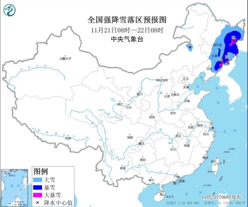 中新网11月21日电据中央气象台网站消息,中央气象台11月21日6时发布暴雪黄色预警:预计11月21日08时至22日08时,辽宁北部和东部、吉林中东部、黑龙江中东部等地有大到暴雪,其中,吉林东部、