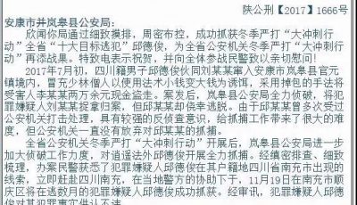陕西省公安厅向岚皋县公安局发来贺电