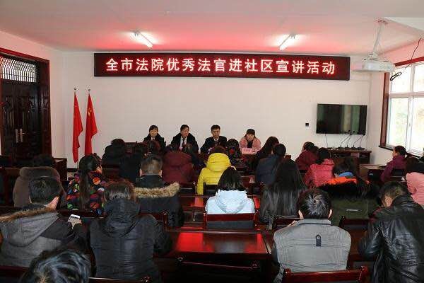 1月25日、26日,铜川中院在新区裕丰园社区和印台区南苑社区举办了两场优秀法官“进社区”宣讲活动。全国模范法官、印台区法院法官胡振华、全国优秀法官、耀州区人民法院新区审判庭法官罗红涛走进社区、走到群众中间,立足司法审判实践,用自己真实生动地办案经历,以形象直观的方式讲述了他们的办案故事。通过和群众面对面,零距离接触,传播法律文化,让社会公众养成法治思维、树立法治信仰。