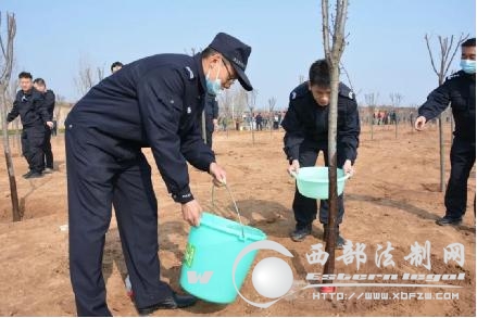 本网讯 为深入推进党史学习教育,引导党员警察队伍用实际行动践行习近平生态文明思想,落实“绿水青山就是金山银山”的新发展理念,按照市绿化委统一安排,3月12日,渭南监狱组织青年党员志愿者到渭南市双创基地开展“为城市添绿 为党旗增彩”主题义务植树活动。