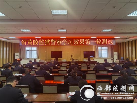 本网讯 3月18日,省黄陵监狱组织党史学习教育和队伍教育整顿学习教育环节学习成效测验。党委书记、监狱长王正华等监企领导班子成员和全体在家警察参加测验。