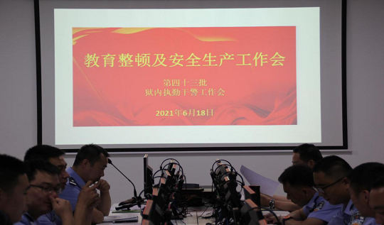 本网讯 6月18日,商州监狱第四十三批狱内值班干警召开了教育整顿暨综合治理及安全生产工作会。 参会人员观看了《...