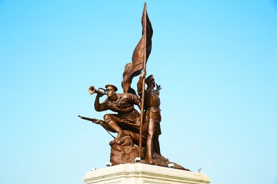 头顶上,泸定桥铁索凌空横跨,红军战士前仆后继、攀爬向前;放眼望去,高耸的雪山寒风凛冽,几名战士正用力地试图摇醒受冻昏迷的战友;再向前看,泥泞的草地上大雨倾盆,一队红军正艰难前行……正面向公众开放的中国